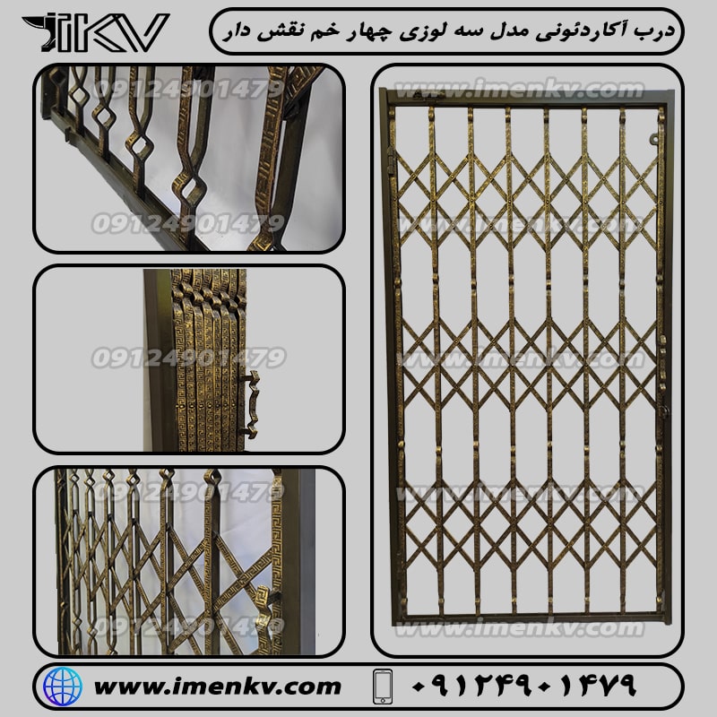 این مدل درب همان درب آکاردئونی ۳ لوزی ۴ خم میباشد که در این مدل فقط تسمه ها به صورت نقش دار هستند.