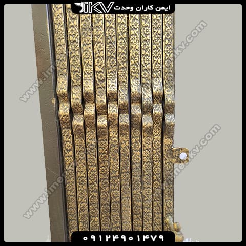 در مورد امنیت درب آکاردئونی این درب آکاردئونی در کنار امنیت بالایی که دارد، زیبایی بسیار زیادی به دلیل تسمه های نقش دار هم دارد.